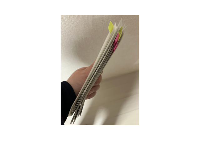 これらはバラバラにならないよう、一つのクリアファイルにまとめておきます。「大きな金額の書類」だけは絶対に無くさない、というルールです。